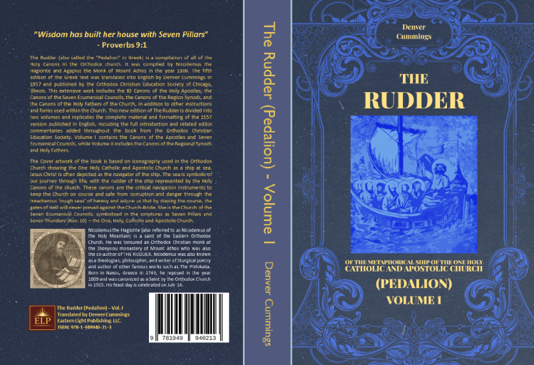 Just Released 12/24/22. All of the Sacred Canons of the Holy Orthodox Church (the Holy Apostles, the Seven Ecumenical Councils, the Holy Fathers and additional Councils). VOLUME II OF THE RUDDER COMING SOON!