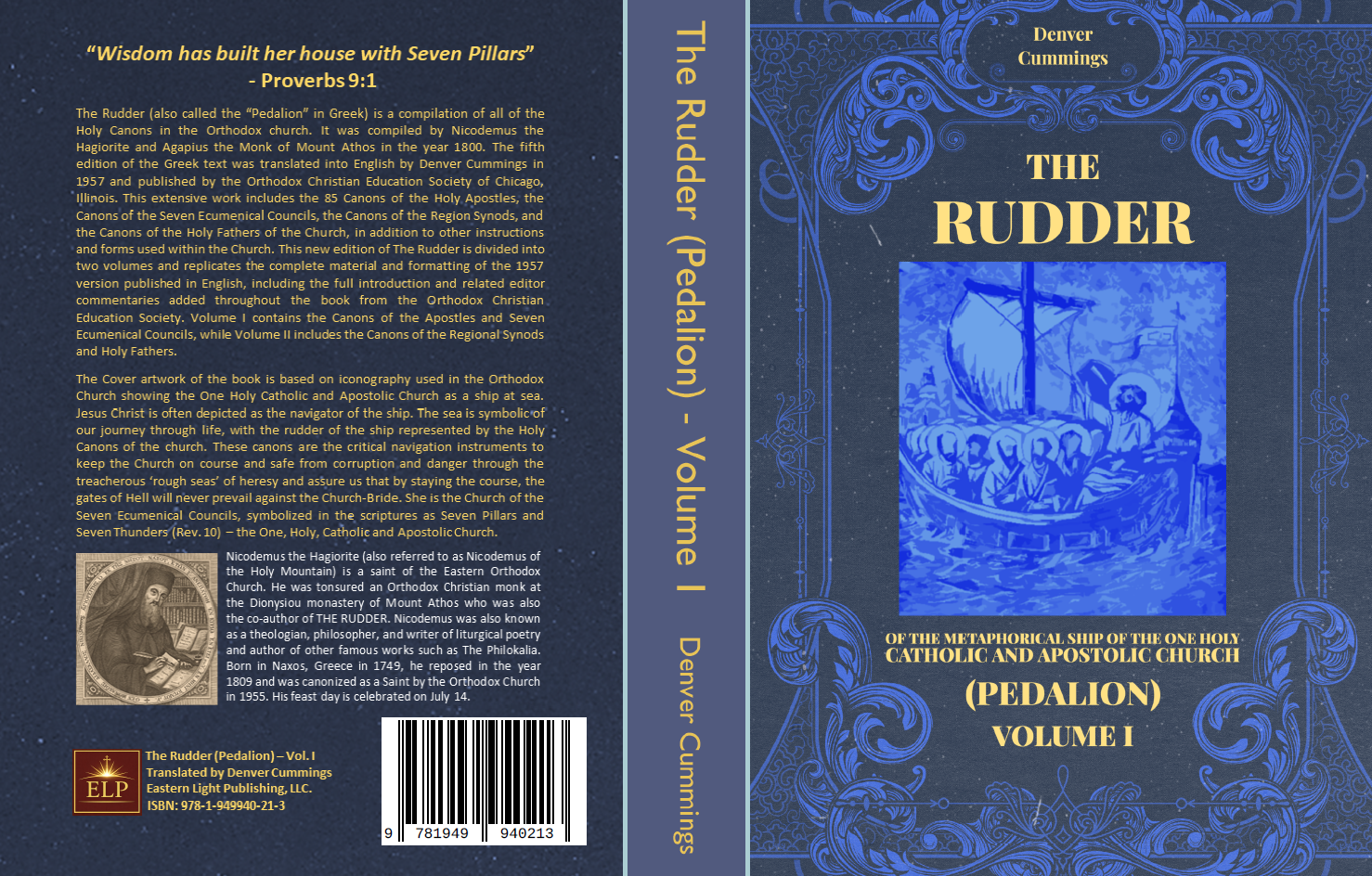 To Thy sacred embrace, O common Mother of Orthodox Christians, holy great CHURCH OF CHRIST. is dedicated this Rudder of the catholic Church, the present handbook interpretative of the divine Canons; and the dedication is one that is most proper and on every score of rightness fitting. For, I well know, all persons, none excepted, will concur in the admission that to the same extent that a mariner’s compass is needed by sailors, and the rudder is necessary to ships, the collection of the Sacred Canons, too—this figurative Compass, that is to say—is needful and this spiritual Rudder is necessary and indispensable to Thee, the spiritual and venerable SHIP prefiguring and representing the ecumenical universal transport of the Catholic Church. And, indeed, this canonical handbook is a sort of rudder and spiritual compass; since it alone, in truth, points accurately and undeviatingly to the Pole—that is to say, to Heaven itself. With it, as with a rudder, the Church of Christ can very surely and very safely steer her course on her voyage to that really calm Harbor of that blissful and wantless destination. In fact, this figurative Rudder was constructed in yoretime by the Holy Spirit through the agency of the Godly-learned Apostles and, from time to time, of Holy Councils, Ecumenical as well as Regional, and of individual great hierarchs of the Church. Many others, after them, as collaborators and adjutories, who steered with it joined hands in mending it, and interpreted parts thereof that were hard to understand, harmonizing well enough passages that somehow seemed to conflict with one another. It is from these, indeed, that we too have compiled the interpretations, and, having compendiously gathered them together under one cover, so far as was possible, we offer this present labor in simple language to THEE, the supernal Mother of us all. With this in mind, O divine Mother, open Thy most sacred arms, like the Lawyer Priest of old, and receive this book gleefully, like a sheaf of fresh ears of wheat (Lev. 2:14) newly reaped and most sacred. Receive and accept, O myron-laden SHIP, “like a merchant-ship bringing in wealth from afar”, as the author of Proverbs says (Prov. 31:14), Thine own Rudder.